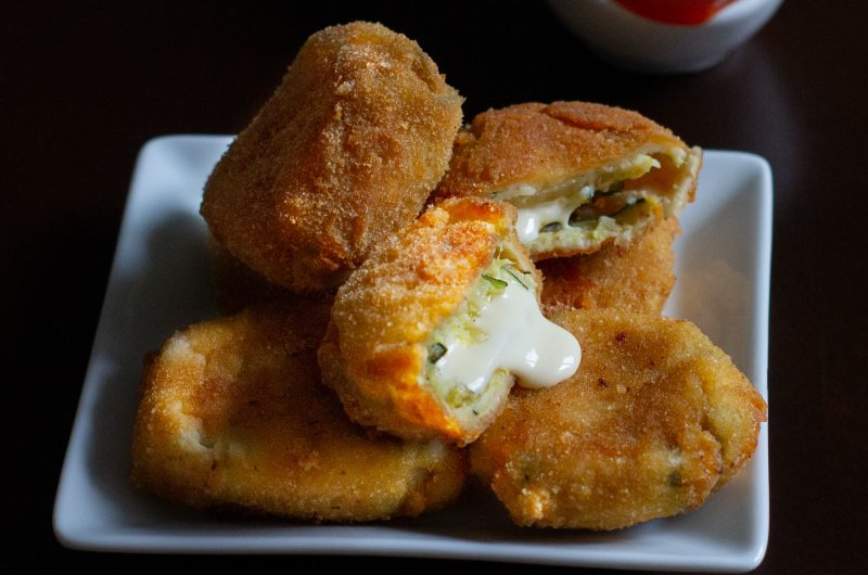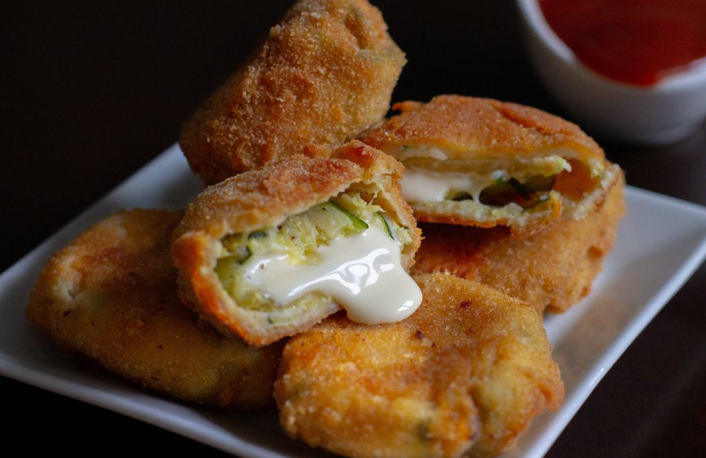 Rántott cukkínibe göngyölt sajt